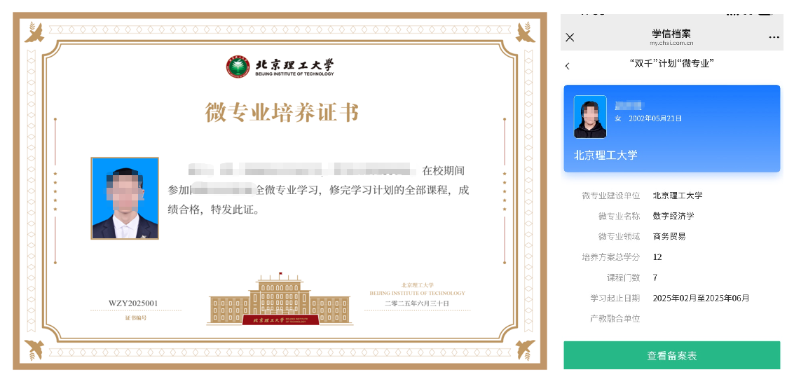 近期,学校制定《北京成品人和一品二品的区别微专业管理办法(试行)》,进一步优化学科专业体系,聚焦未来和战略性新兴产业发展、传统产业转型、人工智能、低空经济等急需紧缺产业领域建设一批微专业,深化教育教学改革、创新人才培养模式、精准对接社会需求方面取得了新的突破。目前,获得微专业证书的2025届毕业生,已通过学信网备案注册。